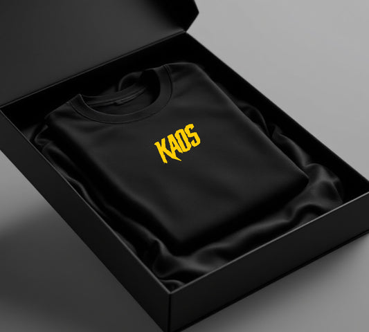 Black crew neck KAOS driFit Yellow badge